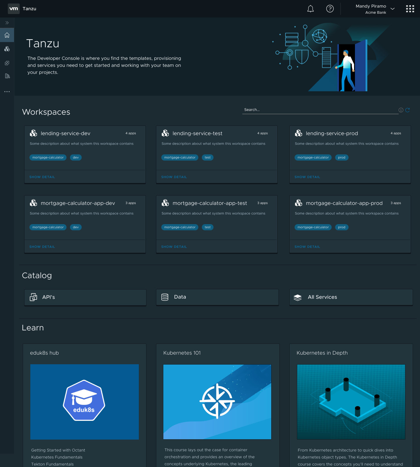 Outcome: Connect people, structure and applications to the underlying infrastructure. Create simpler workflows for consumers to deploy their applications. Enable customers to configure, secure, and govern their Tanzu platform using Tanzu, VMware and third-party components.